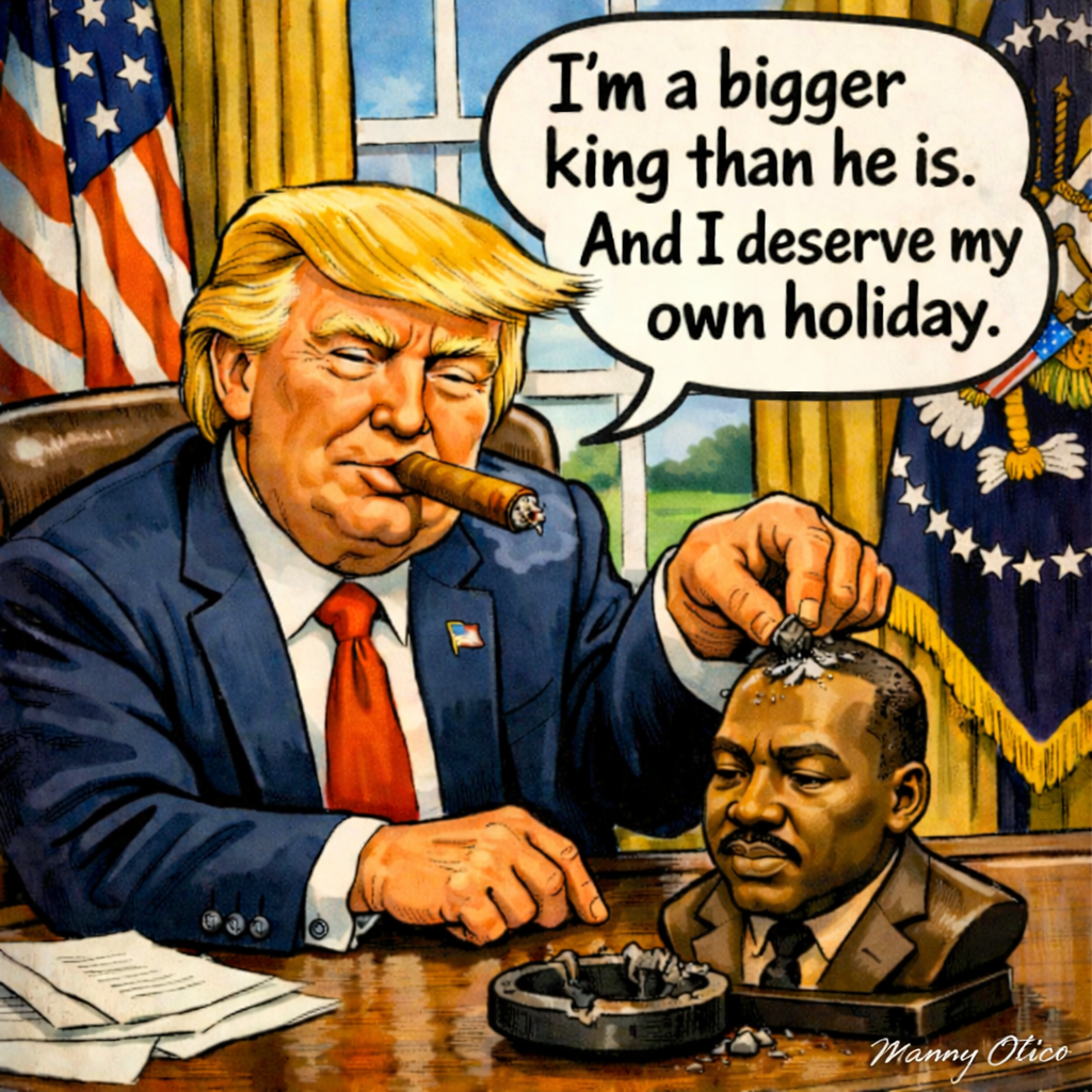 I think that the ultimate piece is his audacity! He has the audacity to create a false narrative that justifies his declaration of Martial Law. His use of ICE in our cities is designed to solicit a violent response to justify his declaration! As we approach the November midterm elections, he is setting freedom-fires in the hearts of American citizens!  We see that now in Minnesota!