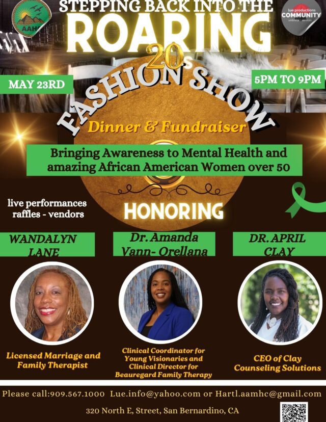 SAN BERNARDINO, CA— In recognition of Mental Health Awareness Month, the African American Health Coalition in partnership with LUE Productions Community Umbrella Services, is proud to honor three outstanding women for their impactful contributions to the mental health field and their dedication to strengthening communities: