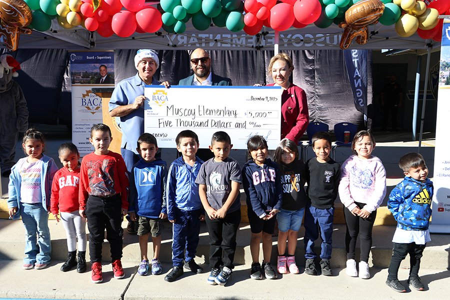 SAN BERNARDINO, CA—San Bernardino County Fifth District Supervisor Joe Baca, Jr., in partnership with the San Bernardino City Unified School District (SBCUSD), brought holiday cheer to Muscoy Elementary School on December 9 by distributing toys to all 650 students and presenting the school with $5,000 to be used for the school’s greatest need. The event created a moment of joy for students and highlighted the strong community partnership supporting children in the Muscoy community.