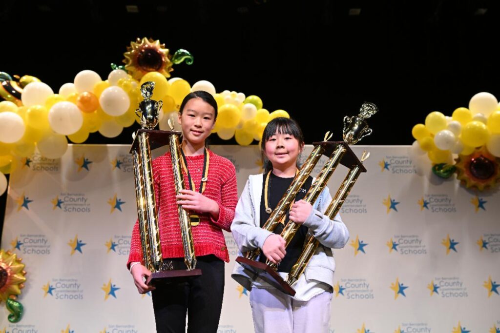 SAN BERNARDINO, CA—- SAN BERNARDINO — San Bernardino County Superintendent of Schools (SBCSS) was proud to crown two students as 2025 San Bernardino County Spelling Bee Champions following the intense linguistic competition held at San Bernardino Valley College on Mar. 12. Fifth grade student, Angeline Wang, and seventh grade student, Hannah Kuo, were named champions after going more than 12 rounds with their fellow competitors.
