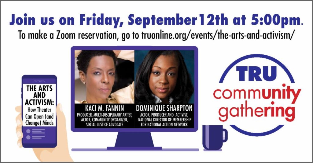 Register here to receive a Zoom link. These gatherings are a service for the theater community and are offered free for TRU members; non-members may also attend for free, but we ask that non-members help keep us running by buying a ticket, making a donation or joining as a member.
